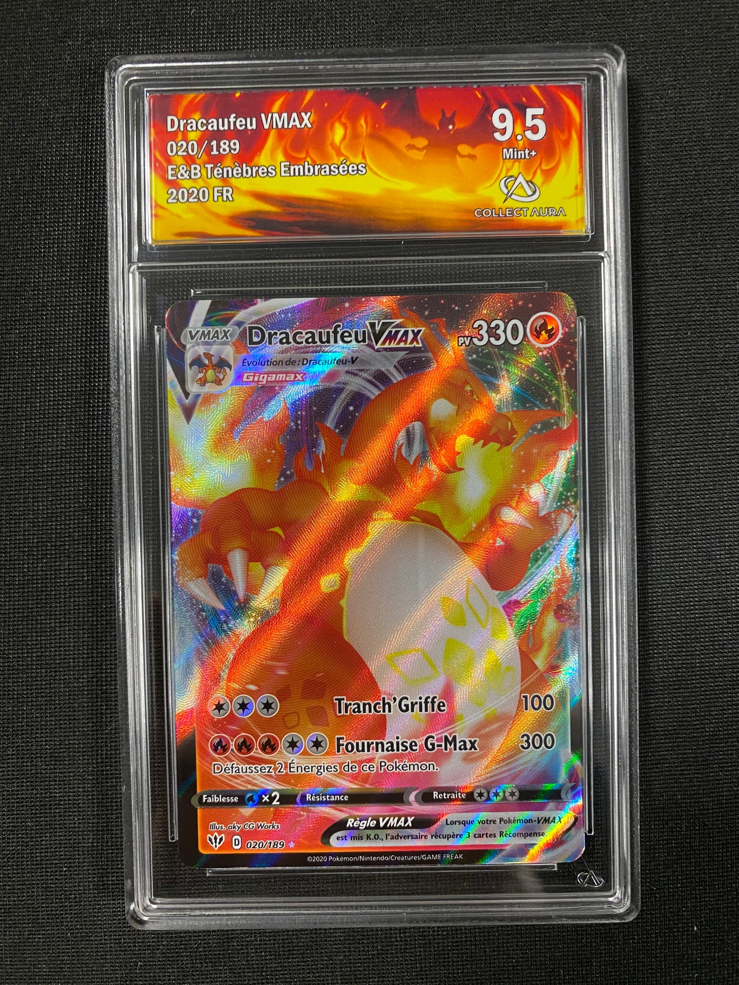 Carte Pokémon Dracaufeu Vmax 020/189 Ténèbres embrasées Collect Aura 9.5