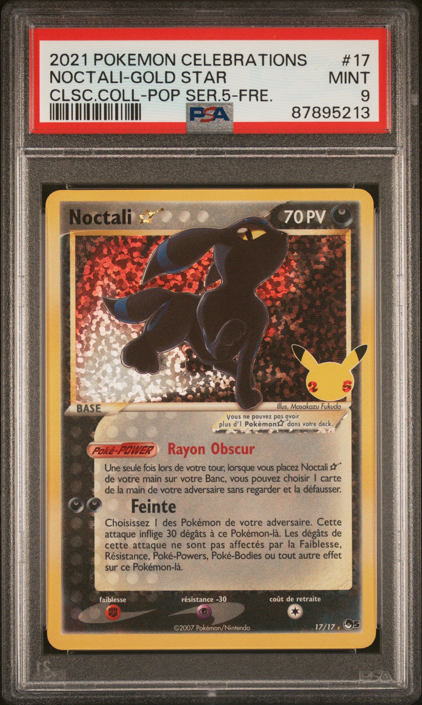 Carte Pokémon Noctali Gold Star 17/17 Célébration PSA 9